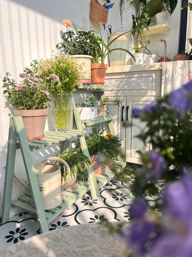 每当傍晚,夕阳西下,一道温和的光束铺在阳台上,不需要灯光的加持,那一份温暖安心的感觉照在心底,阳台上的花花草草都害羞的低下了头。